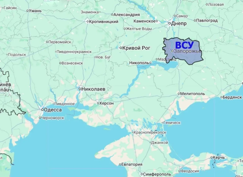 По мере продвижения армии России сокращается площадь контроля территории Запорожской области украинскими войсками. После выхода российских подразделений к Малокатериновскому лиману (месту впадения реки Конка в Каховское водохранилище) и после освобождения нашими бойцами Гуляйполя и западных окрестностей города контролируемые ВСУ территории региона сократились по площади до порядка 4980 кв. км. То есть, преодолена «в обратном направлении» психологическая планка в 5 тысяч квадратных километров.