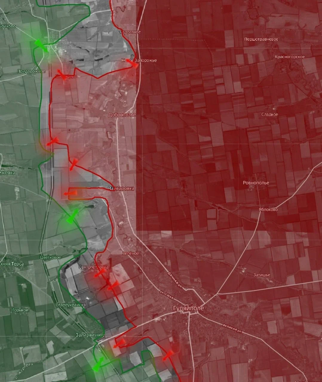 2. Продвижение к южным окраинам Запорожья, до которых после взятия Речного осталось около 12 километров.