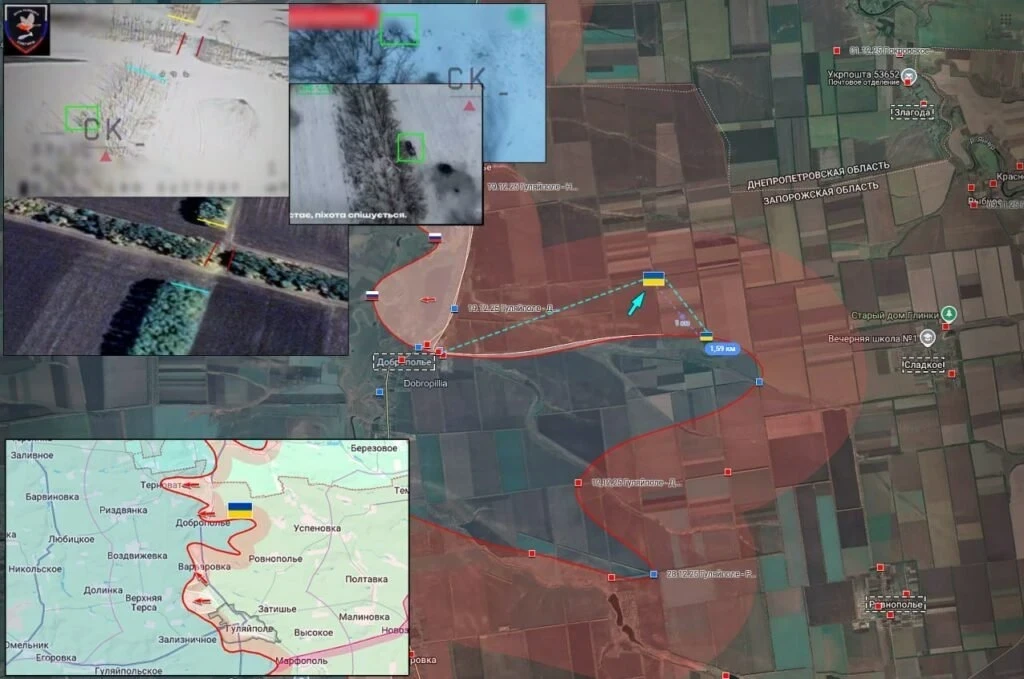 На Гуляйпольском направлении продолжаются бои на южных окраинах Зализничного. Чуть выше по фронту после освобождения Святопетровки ВС РФ выходят на подступы Староукраинки и Цветкового, вплотную приближаясь к Верхней Терсе. Со стороны Воздвижевки ВСУ контратакуют в сторону Прилук и Еленоконстантиновки. МО РФ сообщило об освобождении Придорожного, в 2 км к востоку от Рождественского. А от него до трассы Орехов-Новониколаевка останется менее 10 км. К северу от Терноватого идут бои в районе Христофоровки.