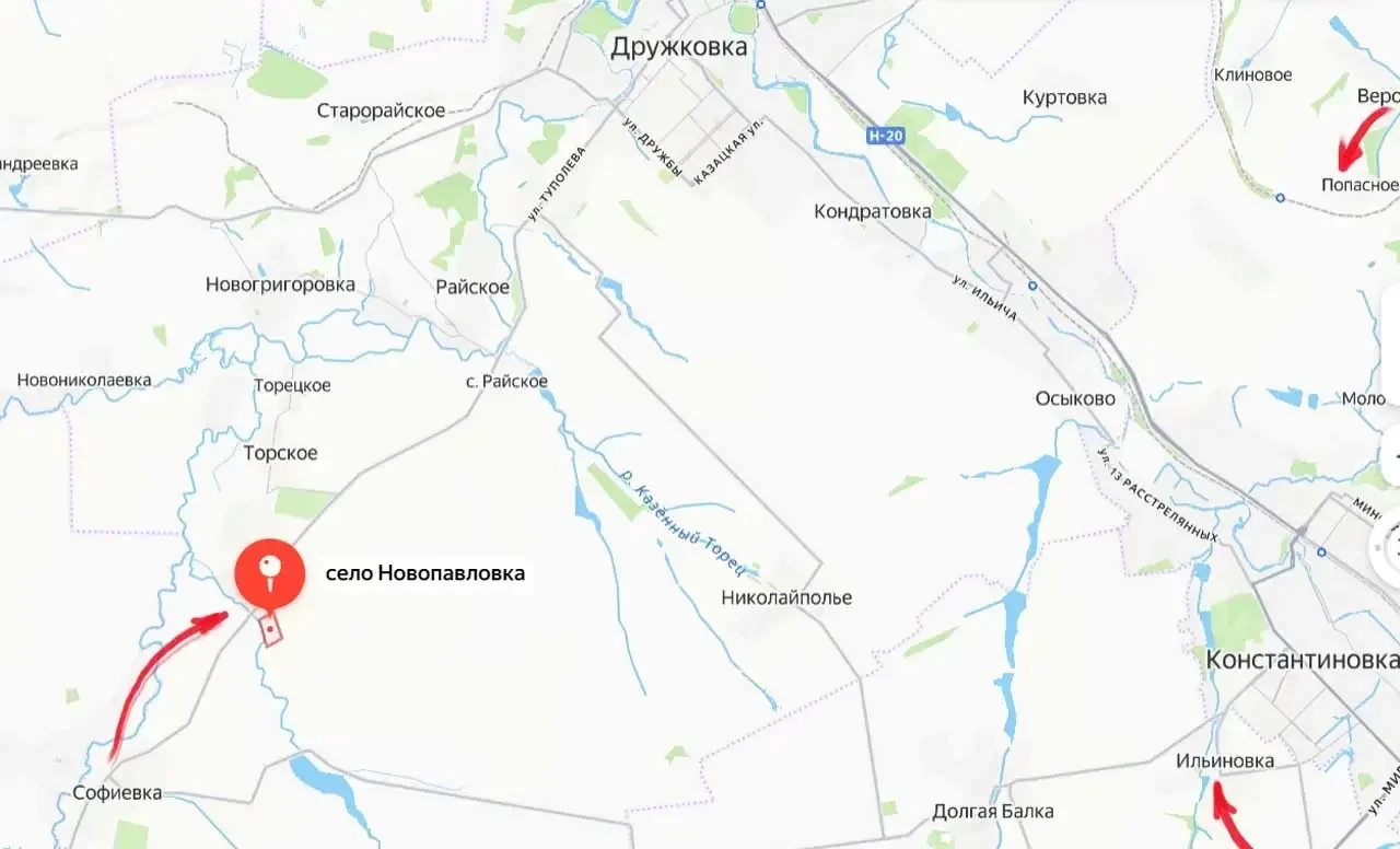 Возвращаясь к освобождению донецкой Новопавловки, отметим, что это продвижение позволяет заходить в тыл группировке ВСУ в Константиновке и одновременно - приблизиться к городу Дружковка, являющемуся фактически частью Славянско-Краматорской (Славянско-Краматорско-Дружковской) агломерации. От передовых позиций ВС РФ к северу от Новопавловки расстояние до Дружковки составляет около 8 км. По сути, это расстояние миномётного выстрела для вооружения калибра 120 мм. Примерно на том же расстоянии наши войска находятся от Дружковки в районе Веролюбовки - северо-восточнее Новопавловки.