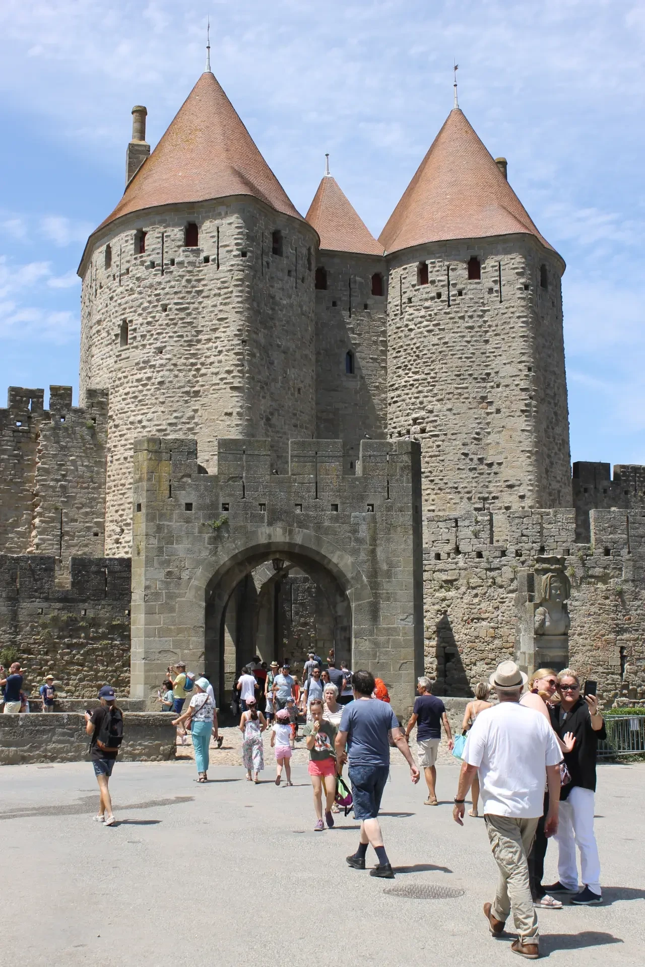 Ворота в Каркассон проходили между двумя высокими башнями довольно сложной формы. Фотография автора