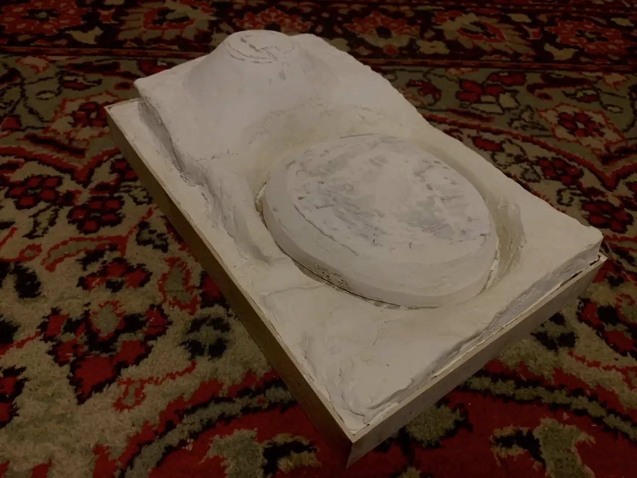 Основание замка «мотт и бейли» – папье-маше из картона от кассет для яиц, обмазанное сверху шпаклевкой для стен. Фотография автора