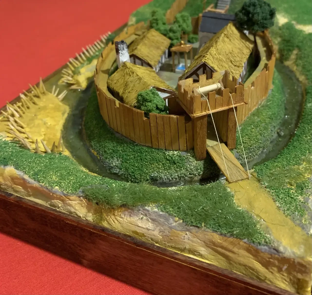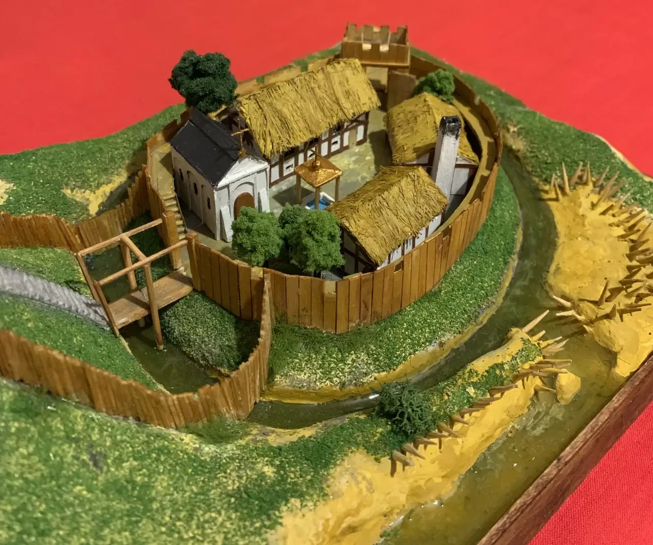 Замок «мотт и бейли» в работе. Установлен донжон, окружающая его стена, лестница, стена бейли с бойницами, мост и воротная башня. Колья у протоки, ведущей в ров, из кончиков китайских зубочисток