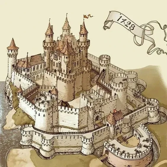 Такой замок стал весьма сложным архитектурным сооружением, включающим в себя множество специфических компонентов. Прежде всего, его окружали деревянные изгороди, преграждавшие подступы к главным стенам, и небольшие предмостовые укрепления, защищающие въезд па подъемный мост. Затем следовала целая система стен и башен с бойницами, позволяющими стрелять из луков и арбалетов во всех направлениях, а на головы подошедших к самым стенам лить расплавленный свинец и кипящую смолу. Высоту стен дополняла глубина рвов вокруг них: нередко встречались рвы, глубина которых составляла 10 м и более.