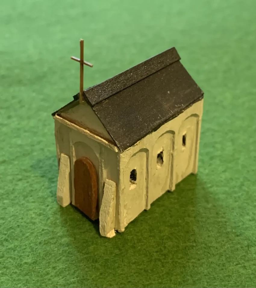Макеты домиков: казарма, конюшня, кузница и церковь в романском стиле. «Соломенные крыши» из… набора льняной пряжи для герметизации труб