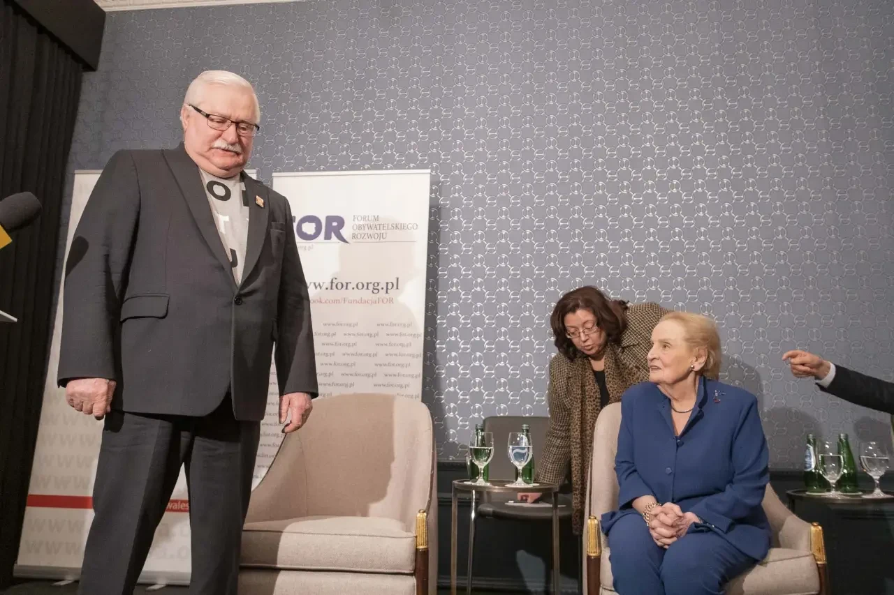 Мадлен Олбрайт, занимая в 90-е годы прошлого столетия должность постпреда Соединенных Штатов при ООН, не позволила польскому лидеру сделать необдуманный шаг. Экс-президент Польши Лех Валенса заявил, что хотел разорвать РФ на части, но ему помешали США.