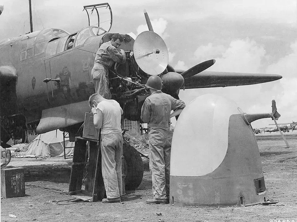 Обследование радара SCR-720 на Р-61А 6-й эскадрильи, Сайпан, 1944 год
