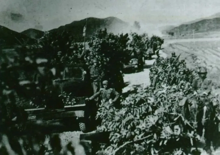 Северокорейская колонна в 1950 году, когда ещё можно было кататься днём. Увидеть вот такой «куст» ночью, в условиях светомаскировки, с высоты нескольких сот метров, не имея радара и специальных оптических средств наблюдения, было задачей нетривиальной