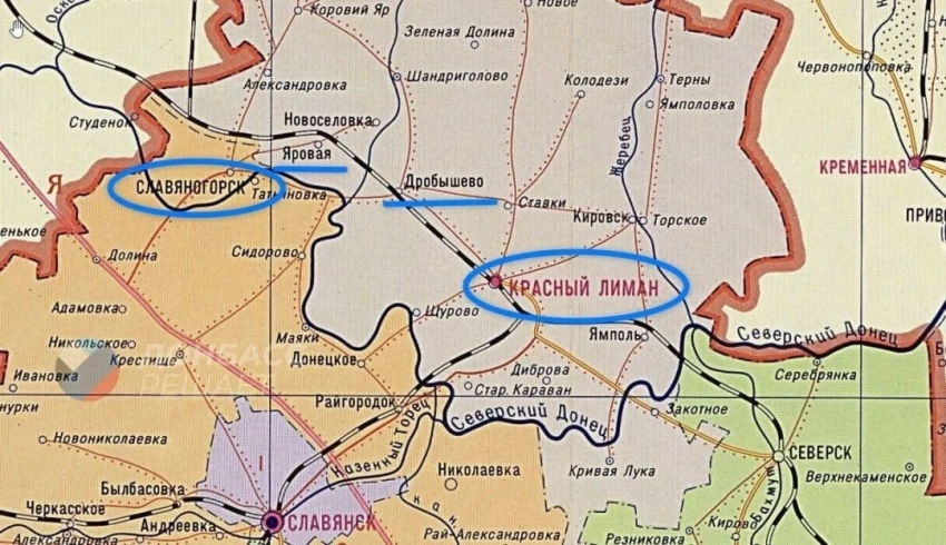 Российские штурмовики прорываются к крупному ж/д узлу в Сосновом (пригород Святогорска).