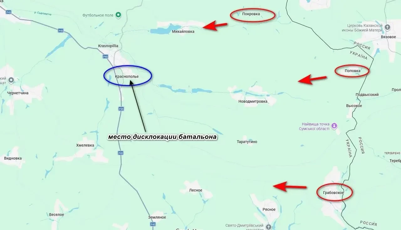 Не успел батальон разместиться в самом Краснополье, российская разведка уже передала координаты казарм подразделения авиации, которая накрыла их авиабомбами. В результате батальон понес значительные потери убитыми и ранеными, уточняет "Военное обозрение".