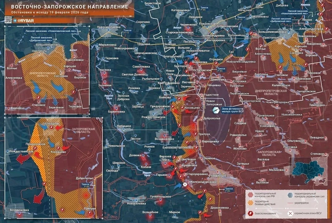 ВС РФ мощно идут вперёд на ключевых направлениях в зоне СВО: свежие карты боевых действий на 20.02.2026