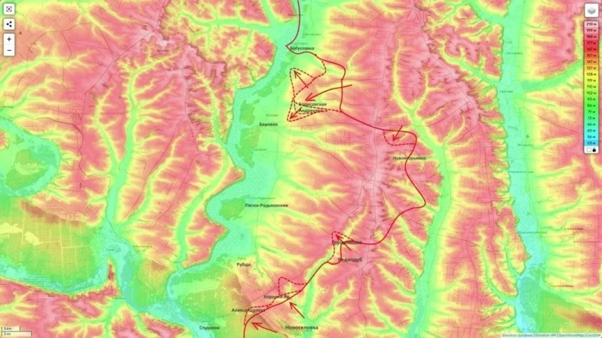 Наблюдается продвижение в сторону Рубцов и Коровьего Яра. Эксперты связывают эти маневры с планомерной операцией по выходу к реке Оскол - важнейшей водной преграде, определяющей логистику и архитектуру обороны на данном участке.
