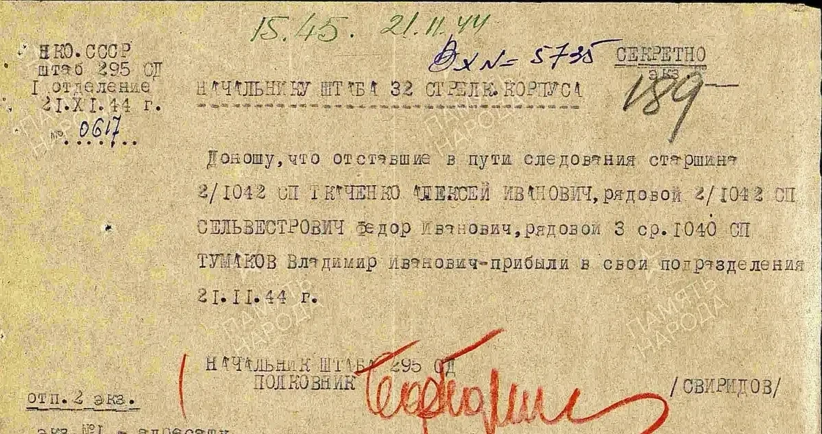 Кадровики пытались навести в этом деле порядок и указывали, что писать следует не «рядовой», а «красноармеец» (документ февраля 1944 г. за подписью начальника 1 отделения штаба 241 сд Лещенко):