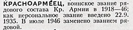 Так слово «красноармеец», помимо широкого значения (служащий в РККА), получило узкое – наименование самой низшей должности военнослужащего.