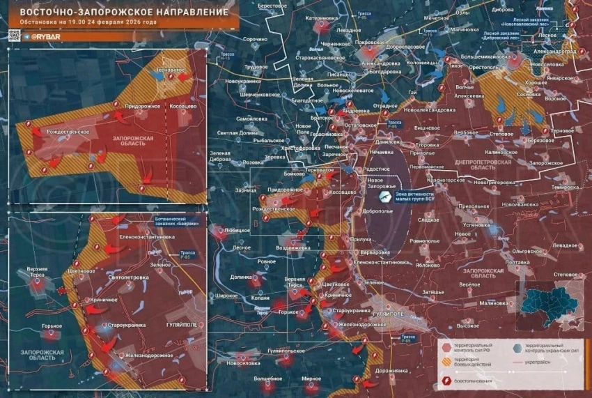 На Запорожском фронте в целом отмечаются бои на ранее сложившихся рубежах, однако более динамичной выглядит ситуация на Гуляйпольском участке.