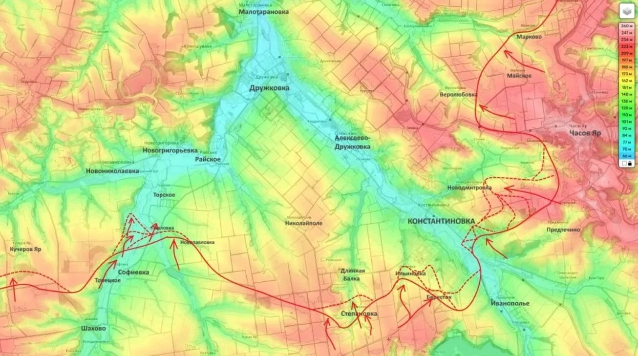 Российские войска вышли к левому берегу реки Полтавка и продвинулись в районы населённых пунктов Торское и Приют. Эти действия позволили расширить контролируемую территорию и сократить расстояние до города Дружковка, который входит в Славянско-Краматорскую агломерацию. По оценкам, сейчас расстояние до южной окраины города составляет около 7,5 километра.