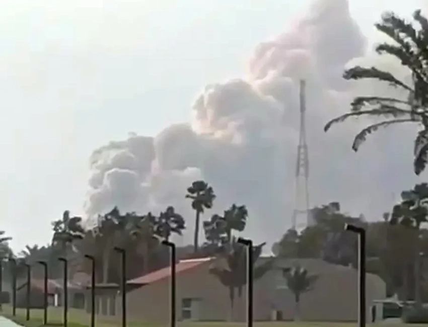 Над местом прилета на НПЗ после взрывов поднимаются густые клубы дыма (видео). Сообщается, что в целях безопасности завод приостановил работу.