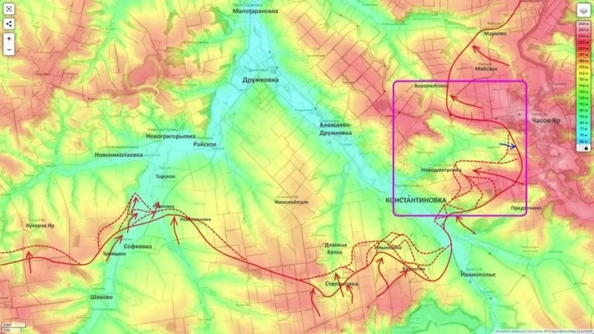 На Константиновском направлении события развиваются в последнее время достаточно интенсивно. Здесь ставка сделана на удары по инфраструктуре. Разрушение двух дамб серьёзно осложнило снабжение украинских подразделений - подвоз боеприпасов и резервов стал заметно труднее.