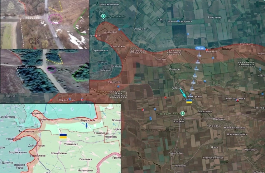 На Гуляйпольском фронте Вооружённые силы России методично взламывают оборонительные линии врага на подступах к самому Гуляйполю, а также на восточных окраинах Верхней Терсы и в районах Воздвижевки и Рождественского. Украинское командование не решается на масштабные контратаки, ограничиваясь заброской малых диверсионных групп.