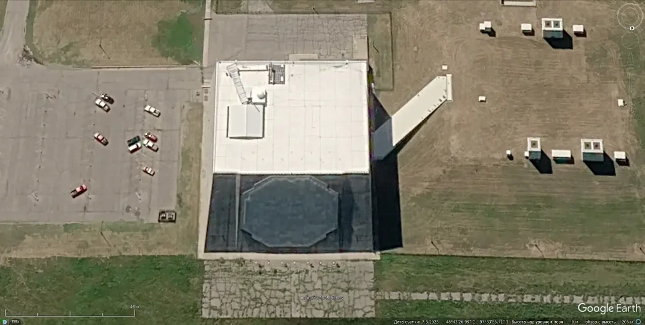 Спутниковый снимок Gооglе Еаrth: РЛС PAR в штате Северная Дакота. Снимок сделан в июле 2025 года