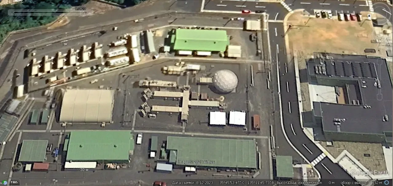 Спутниковый снимок Google Earth: военная база Сярики, на территории которой развёрнута РЛС AN/TPY-2. Снимок сделан в августе 2023 года