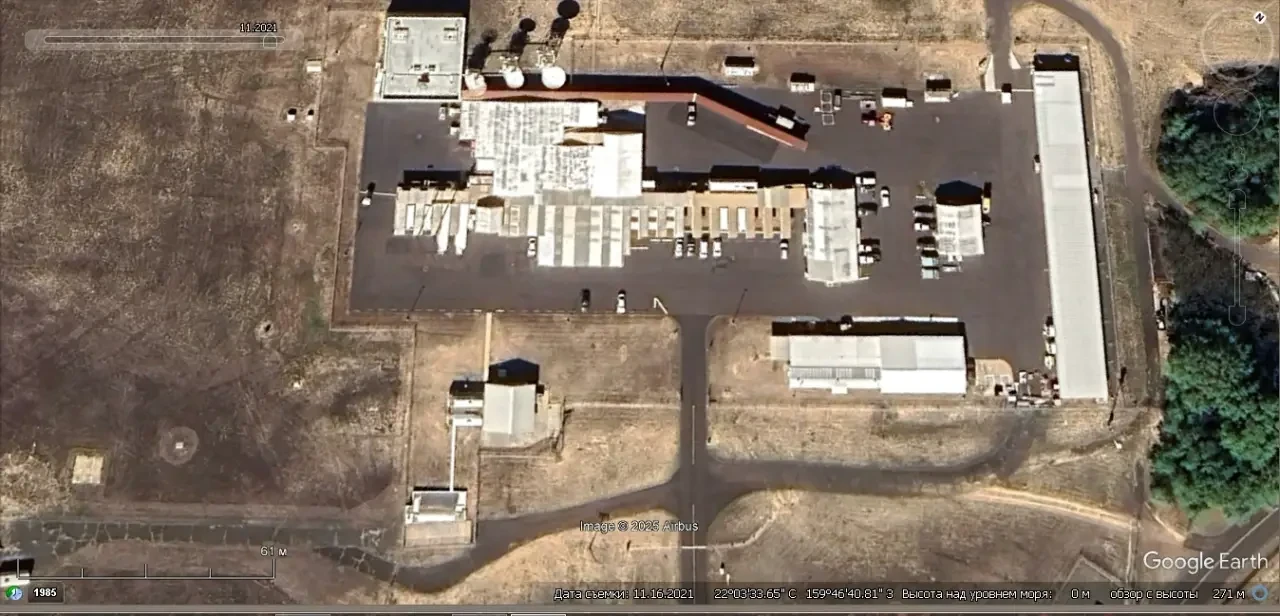 Спутниковый снимок Google Earth: РЛС Aegis Ashore на острове Кауаи. Снимок сделан в феврале 2024 года