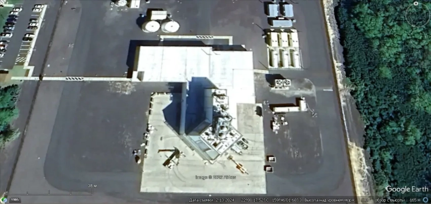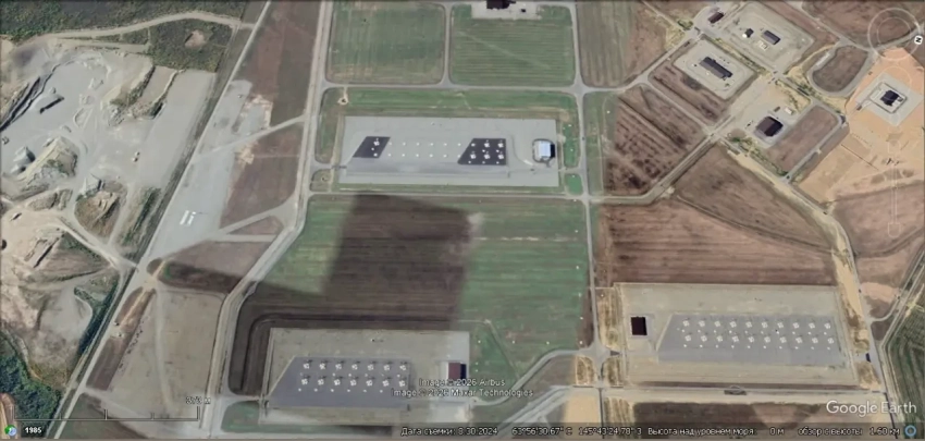 Спутниковый снимок Google Earth: аппаратная часть комплекса Aegis Ashore на авиабазе Девеселу. Снимок сделан в марте 2024 года