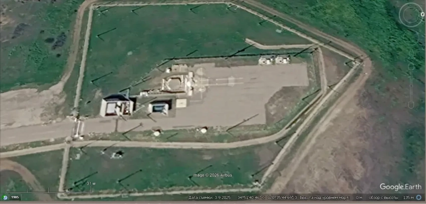 Спутниковый снимок Gооglе Еаrth: РЛС AN/FPS-132 в 1 км южней авиабазы Равдат-Хатан в Катаре. Снимок сделан 14 февраля 2026 года