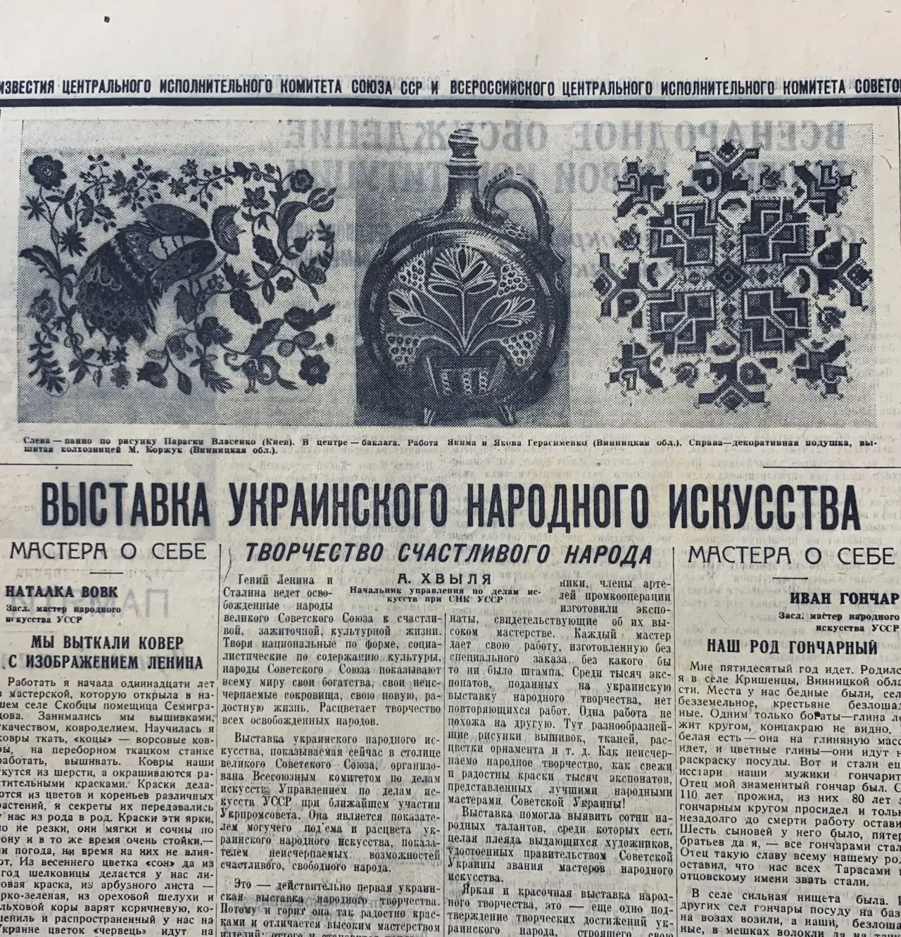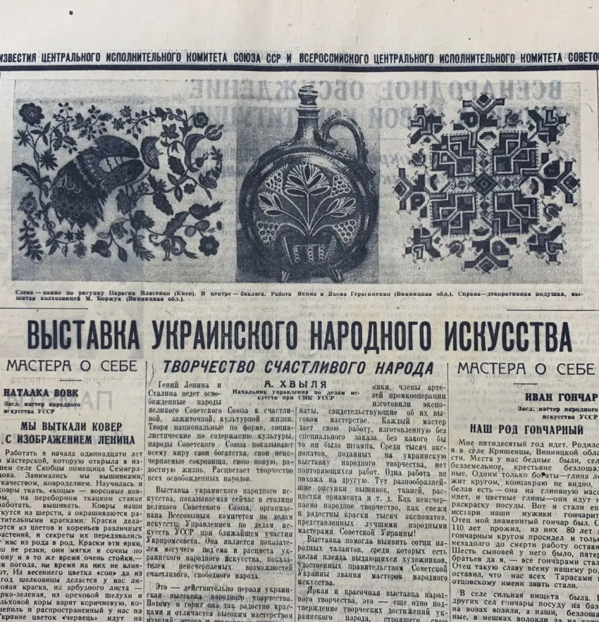 А еще «Известия» писали о народном украинском искусстве – братство, так сказать советских народов зримо воплощалось в печатных статьях и фотографиях…
