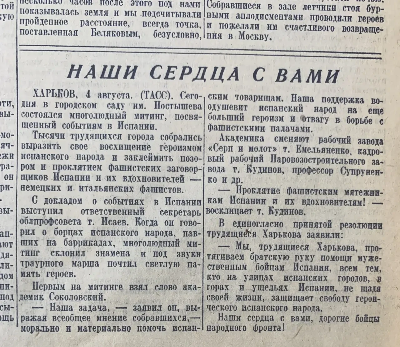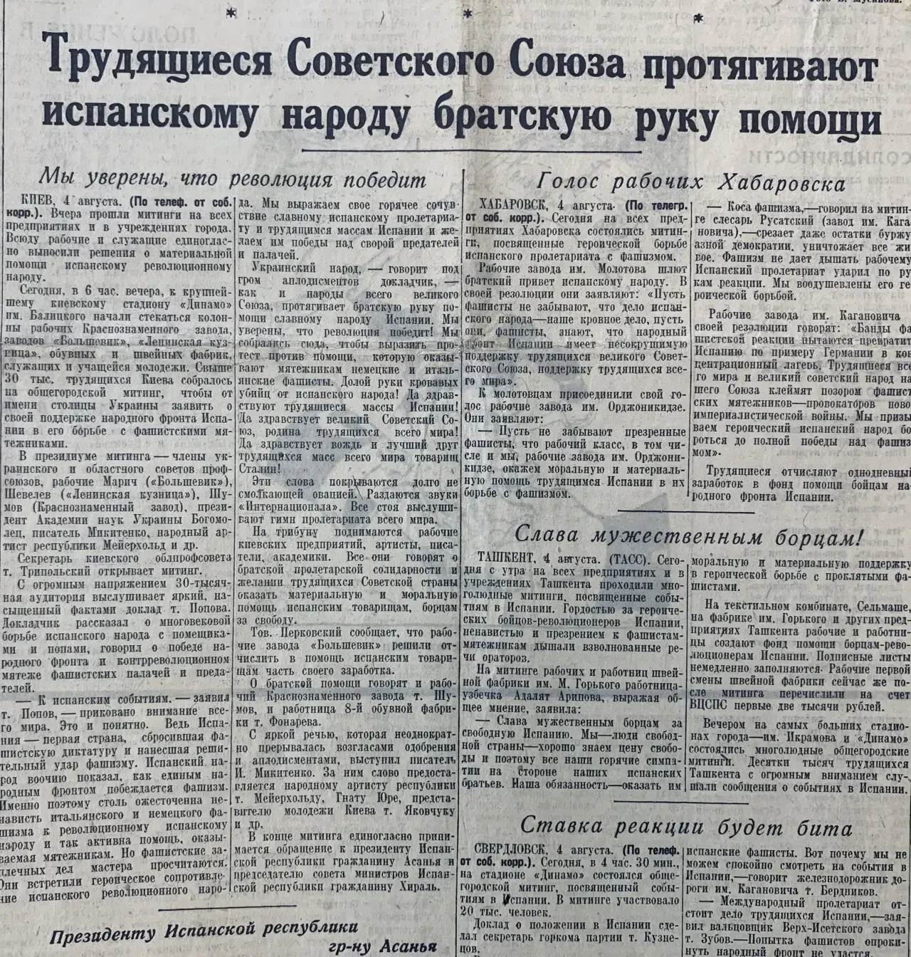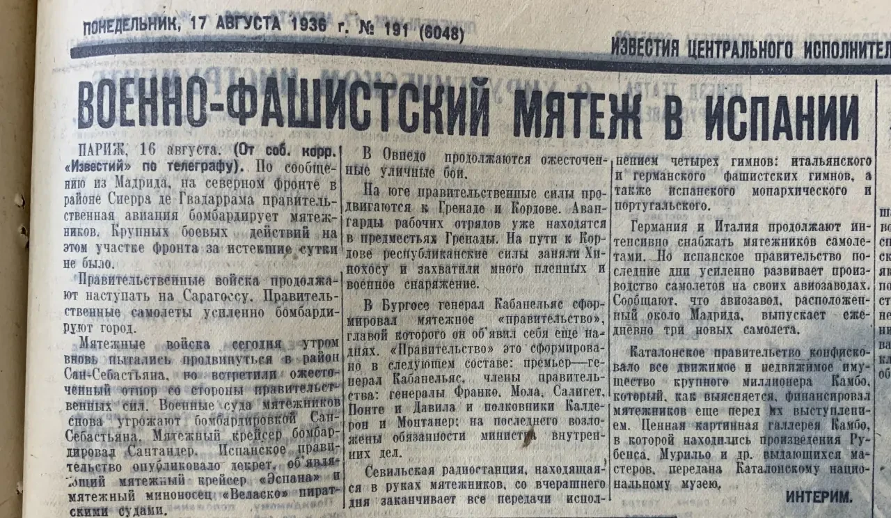 5 августа. Сообщается о помощи мятежникам со стороны Германии и Италии. Вот после этого вполне можно было бы сказать: «Кто принимает помощь от фашистов, тот и сам фашист!». Все было бы логично и обоснованно