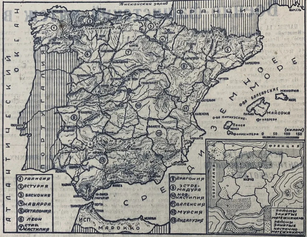 Карта Испании из газеты «Известия»