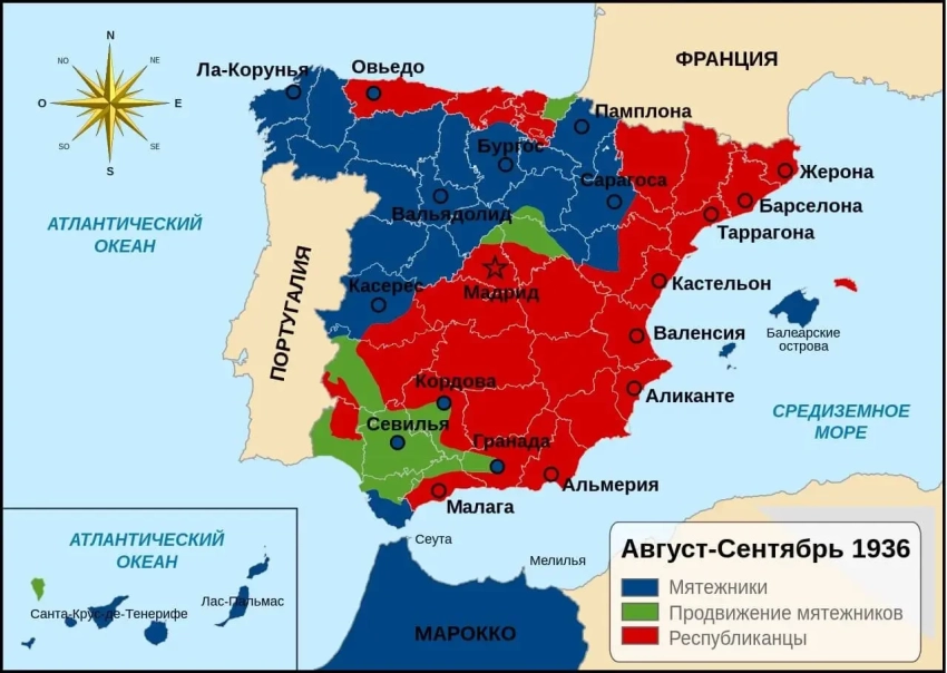 Современная карта начального этапа Гражданской войны в Испании