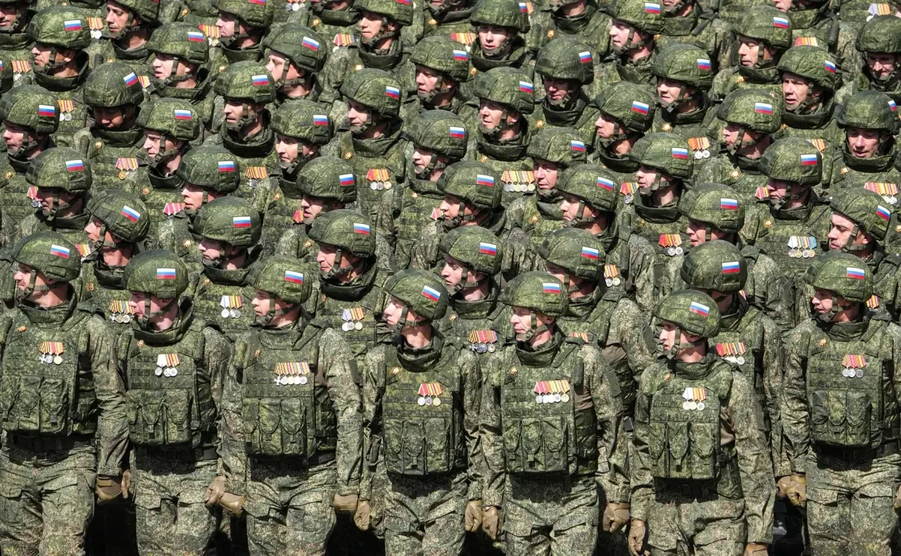 Военнослужащие-участники спецоперации на параде 2025 г. Снаряжение соответствует актуальной версии «Ратника»