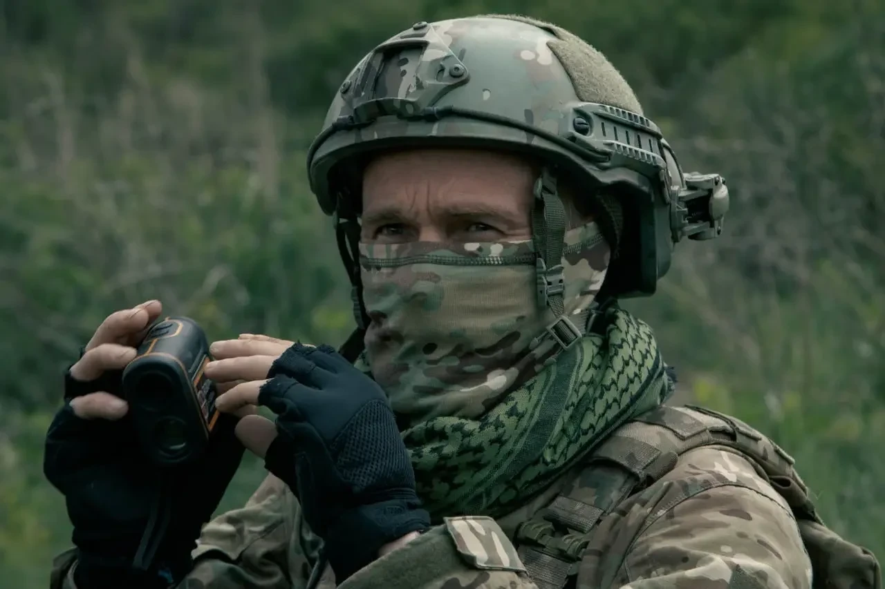 Снайпер-наводчик с нестандартным составом снаряжения, подобранным индивидуально