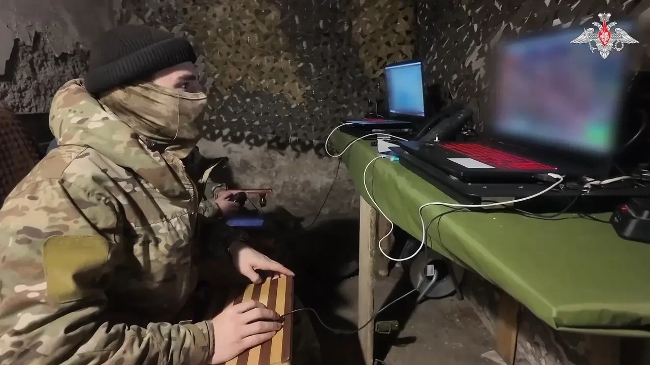 Оператор БПЛА в современном зимнем обмундировании