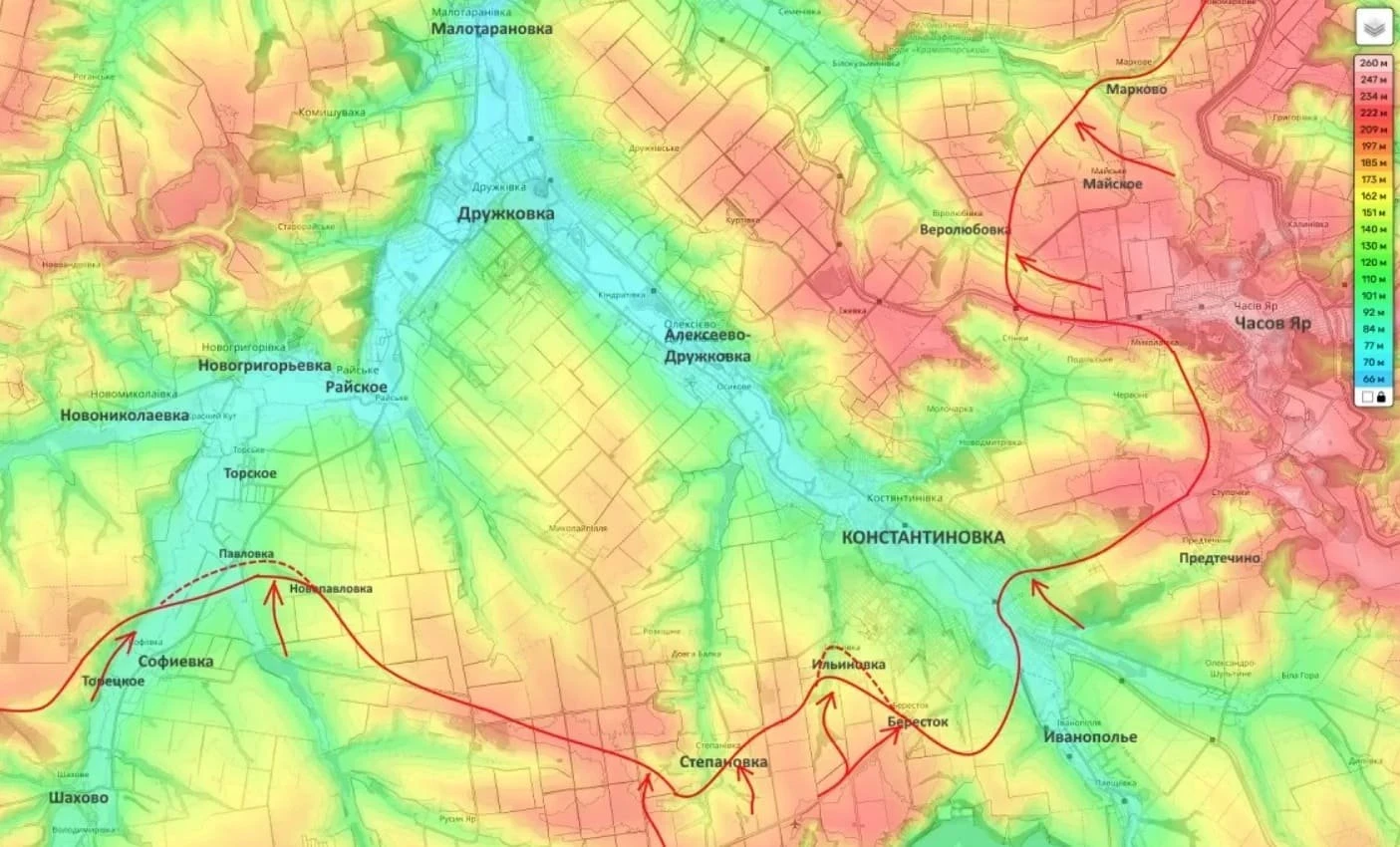 Если обратиться к Краматорско-Славянскому направлению, то здесь продолжается наступление третьей армии группировки "Юг". Подразделения ВС РФ, опираясь на занятые высоты в Закотном, начали зачищать территорию лесополосы южнее, где имели успехи.