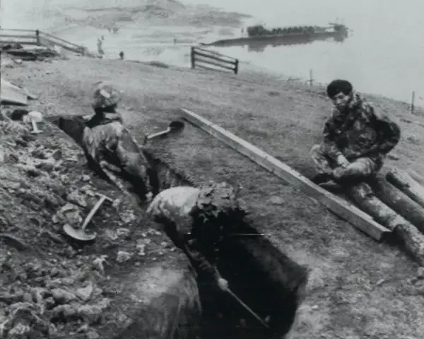 Аргентинцы у крытой огневой точки на перешейке Дарвин — Бока-Хаус