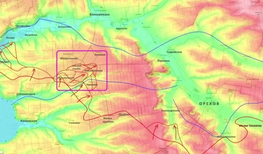 «С учётом нашего наступательного порыва, противнику удерживать позиции в полях будет неимоверно сложно, не опираясь на населенные пункты. Именно поэтому крайне важно сейчас выбить врага из этих полукругом расположенных сел. Из четырех мы их уже выбили, осталось занять Магдалиновку и Запасное», - проинформировал эксперт.