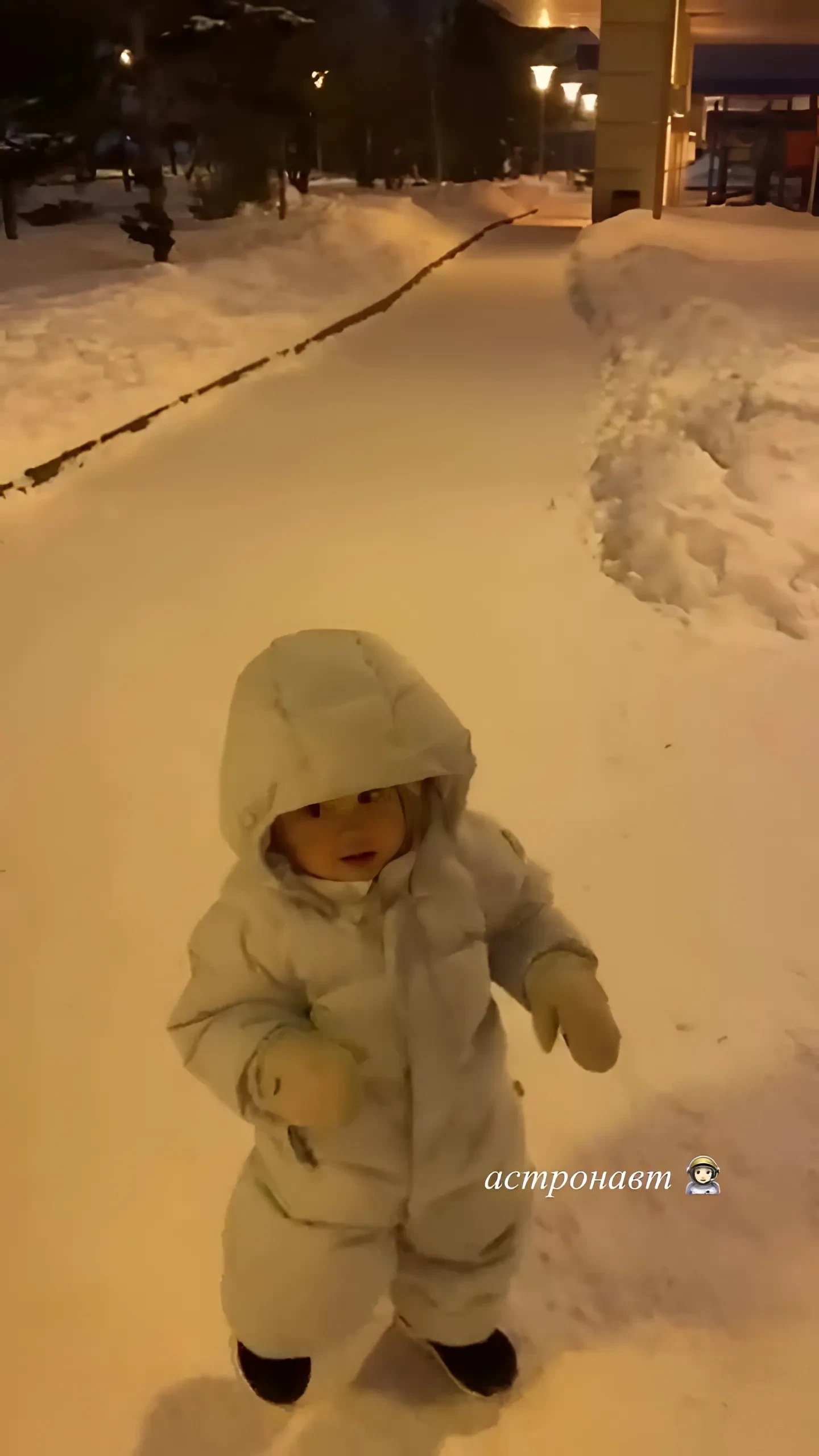 "Астронавт", — подписала Казанова видео с годовалой дочерью, в котором та идёт в зимнем комбинезоне по заснеженному тротуару. При этом, в отличие от предыдущих видео, в новом ролике можно рассмотреть лицо девочки.