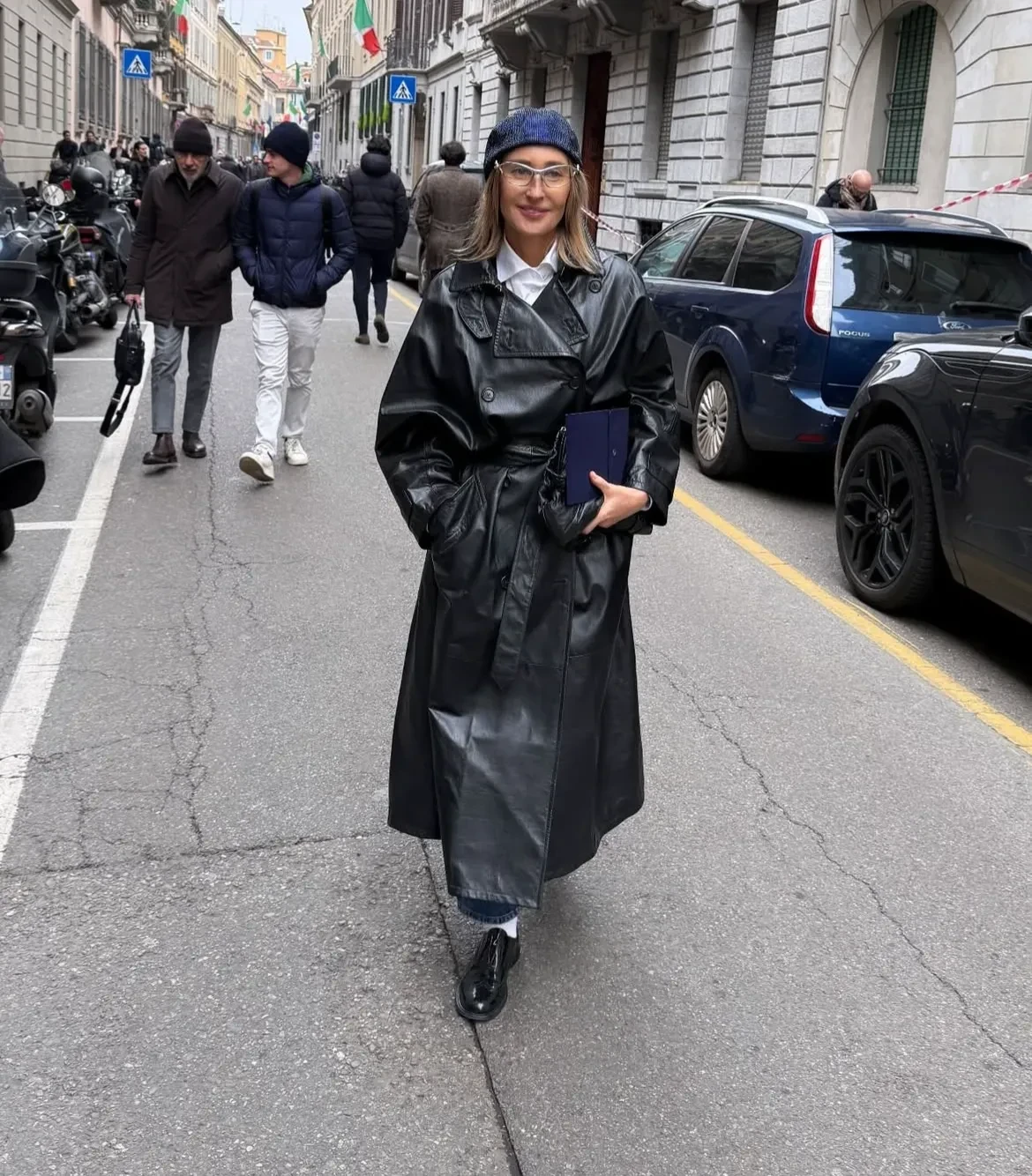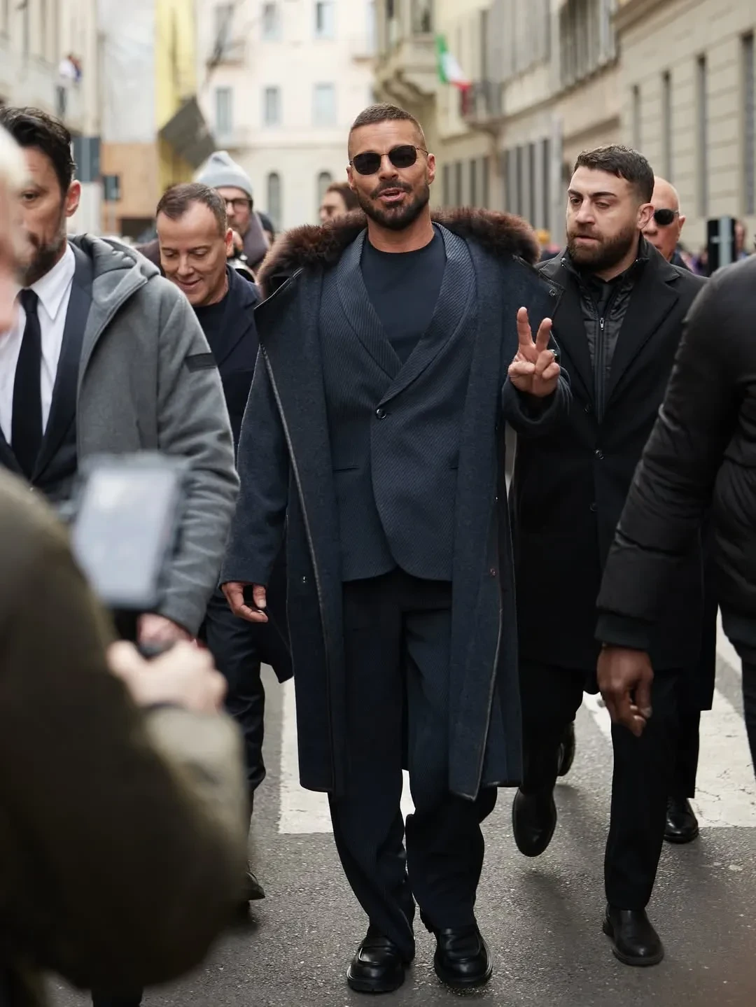 54-летний Рики Мартин для редкого выхода в свет выбрал костюм бренда и пальто с мехом в тон, а 52-летняя частая гостья модных показов Оксана Бондаренко пришла в кожаном пальто.