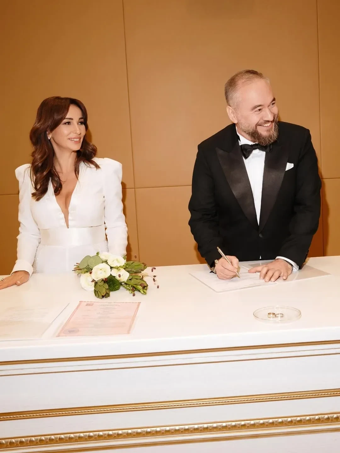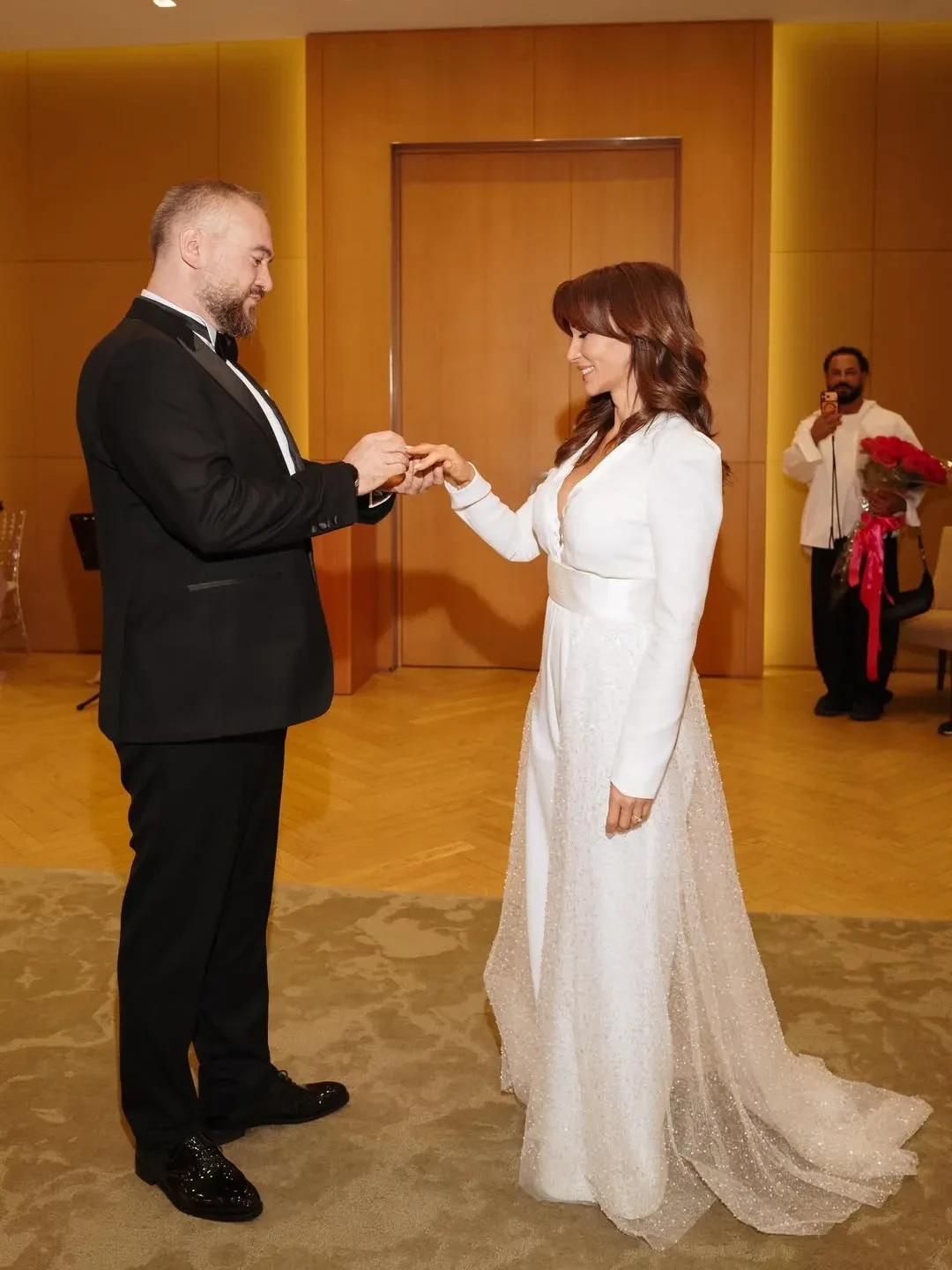 Анфиса Чехова сообщила, что впервые вышла замуж — за 44-летнего актёра и продюсера Александра Златопольского. В своём инстаграме* она показала кадры из загса, на которых предстала в белом брючном наряде.