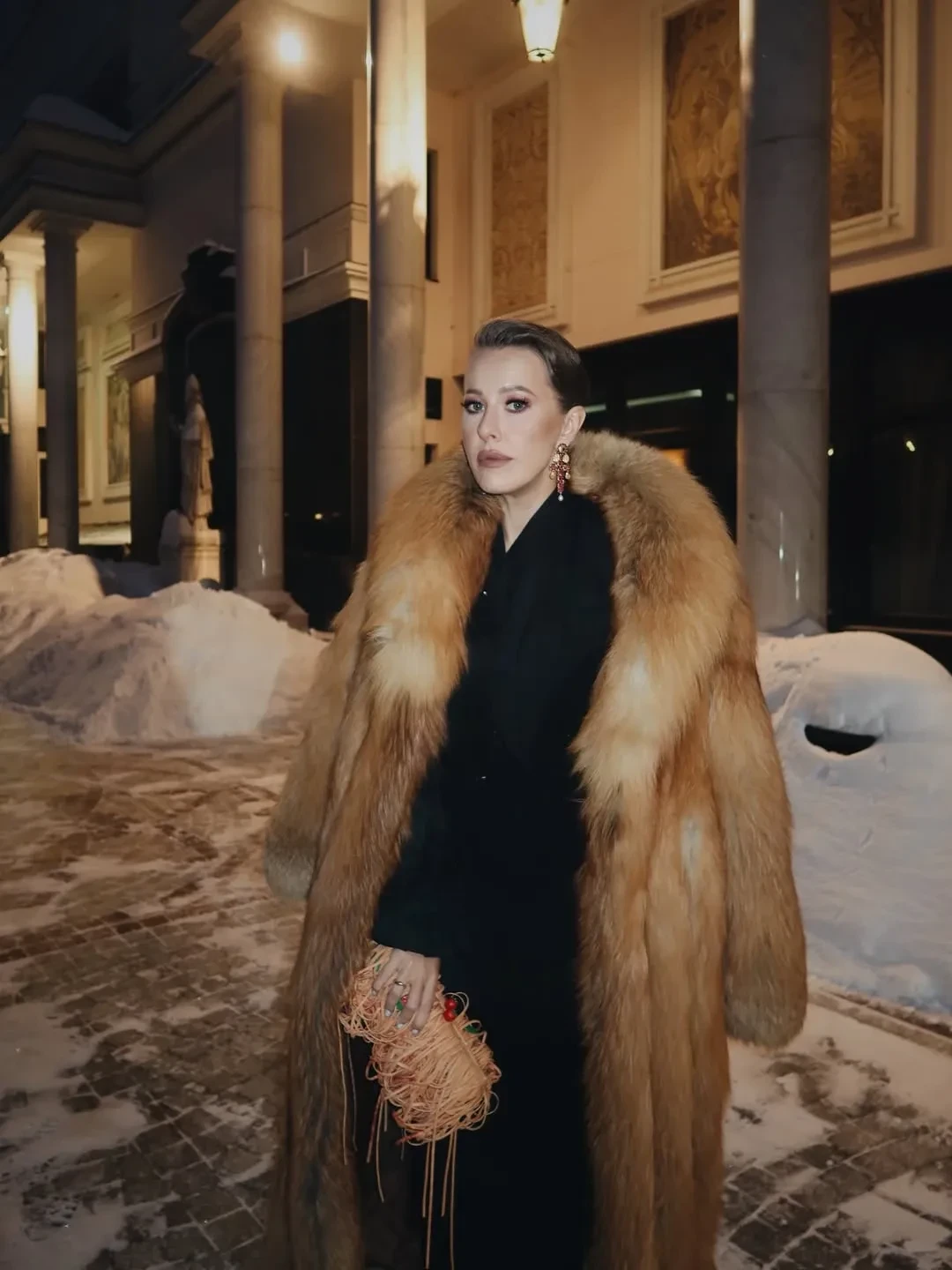 Ксения Собчак в мехах вышла в свет на фоне отставки своего мужа Константина Богомолова из Школы-студии МХАТ