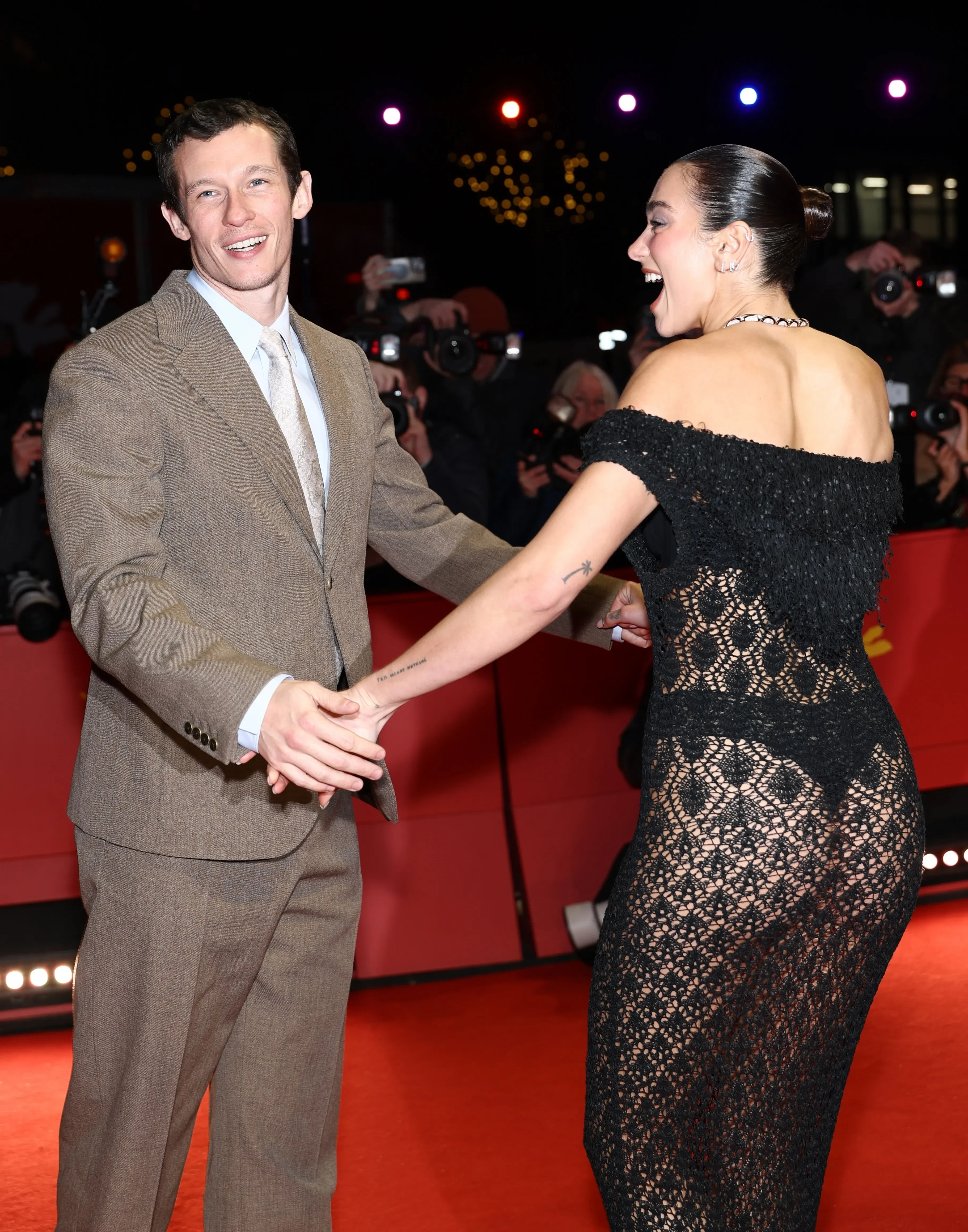 Певица Дуа Липа вышла в свет с женихом Каллумом Тёрнером на 76-м Международном кинофестивале Берлинале. Пара посетила премьеру фильма "Подрезка кустов роз", где Тёрнер сыграл главную роль. В ленте также снялась 58-летняя Памела Андерсон, которая тоже вышла на дорожку.