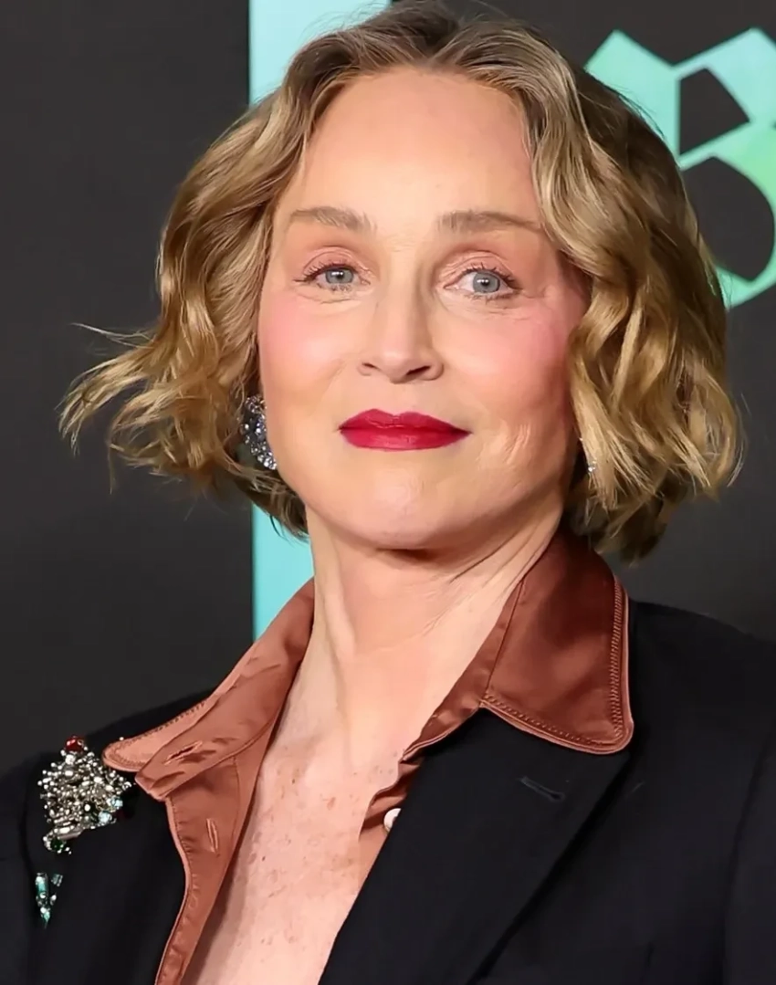 67-летняя Шэрон Стоун вышла в свет в брючном костюме и с декольте, а 43-летняя Приянка Чопра позировала в коричневом платье с кожаным корсетом и разрезом.