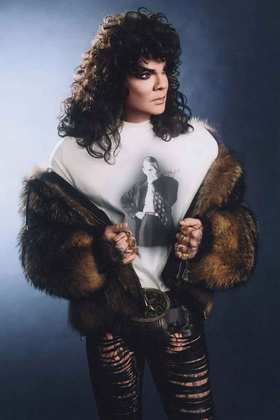 На снимках 58-летний народный артист России позирует в футболках из коллаборации, а также в разных шубах, кожаных брюках, джинсах клёш, ковбойских сапогах и куртке-косухе. Образы Киркорова дополнили массивные ювелирные украшения и причёска в стиле 1980-х годов.