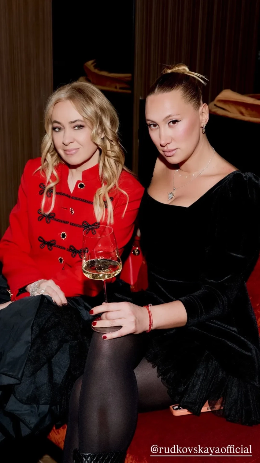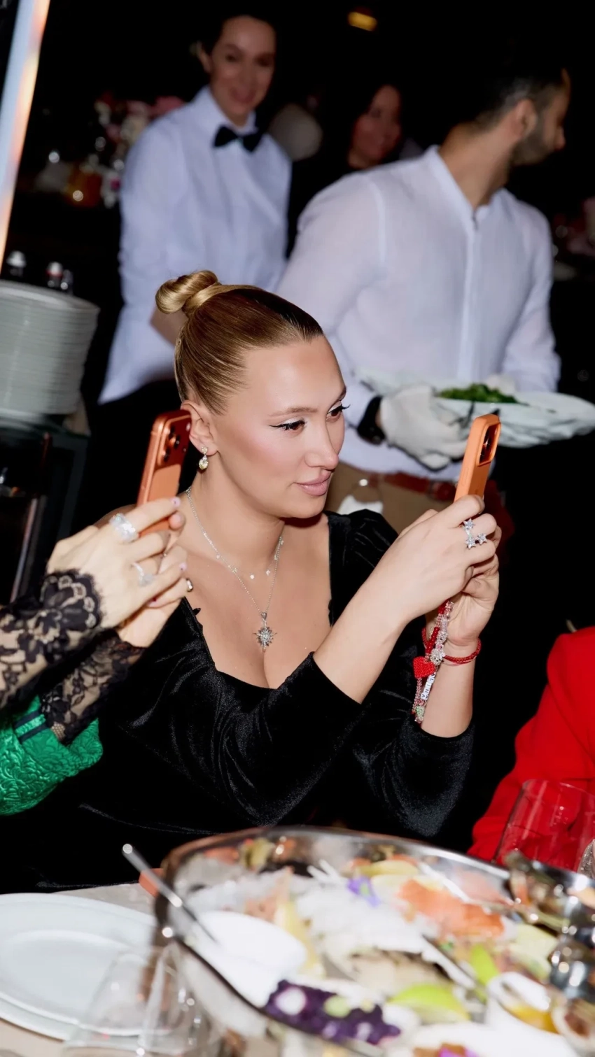 Буре сидела за одним столиком с Яной Рудковской и, судя по всему, пребывала в хорошем расположении духа: активно фотографировалась с другими гостьями и танцевала.