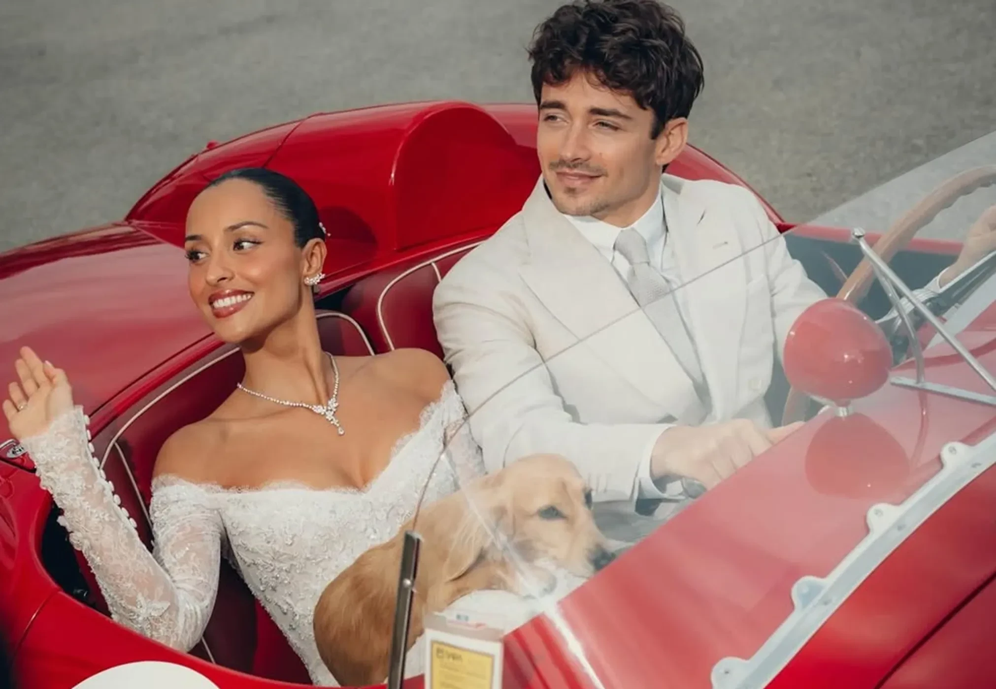 Звезда "Формулы-1" Шарль Леклер женился на 25-летней модели и блогере Александре Сент-Мле. Свадебная церемония прошла в камерной обстановке в Монако. Вместо лимузина новобрачные прибыли к месту торжества на винтажном Ferrari 250 Testa Rossa 1957 года.