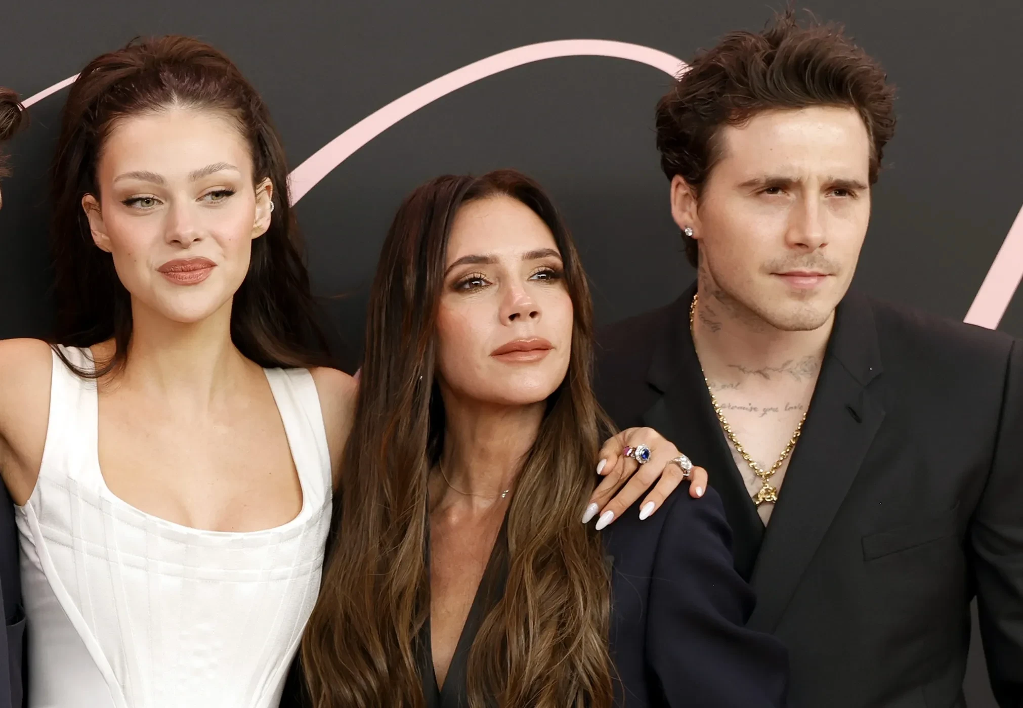 Никола Пельтц, Виктория и Бруклин БекхэмНапомним, своё заявление Бруклин завершил словами о том, что всё, о чём они сейчас мечтают с его женой Николой Пельтц, — это "мир, уединение и счастье для них и их будущей семьи".