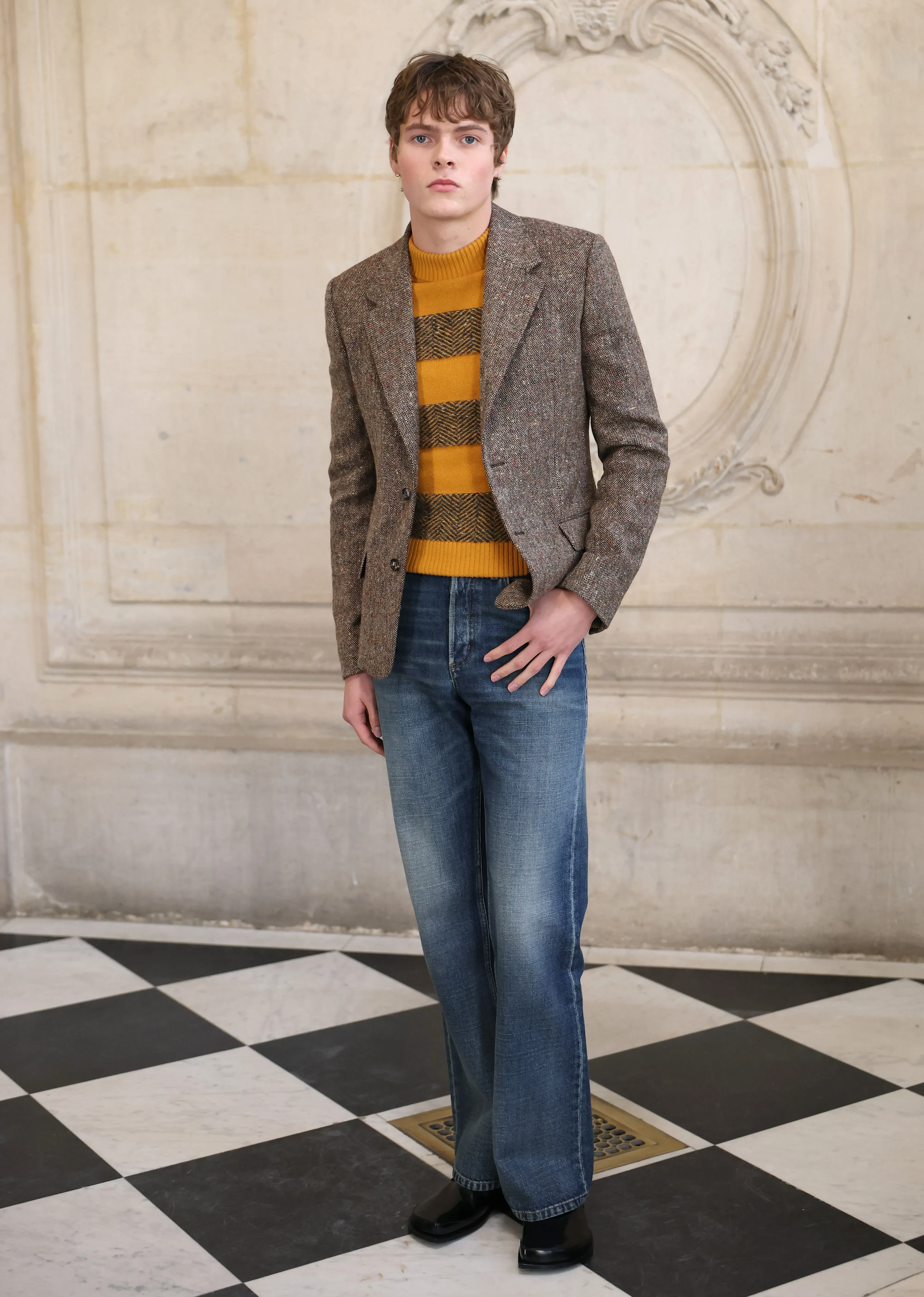 Дельфина и Антуан АрноРоберт ПаттинсонРоберт ПаттинсонЛуи ГаррельЛуи ГаррельМозес МартинМозес МартинМиа ГотМиа ГотДжейми ДорнанЯнг ЛинМужская коллекция модного дома Dior под руководством креативного директора Джонатана Андерсона вызвала смешанные эмоции в соцсетях и у модных критиков. Одни нарекли её смелой, дерзкой и даже революционной, чего так не хватает модному миру, а другие посчитали образы слишком женственными и назвали коллекцию недоразумением, от чего "консерваторам не по себе". Сам дизайнер при создании коллекции вдохновлялся работами Поля Пуаре, эстетикой deadbeat и фильмом "Уитнэйл и я".