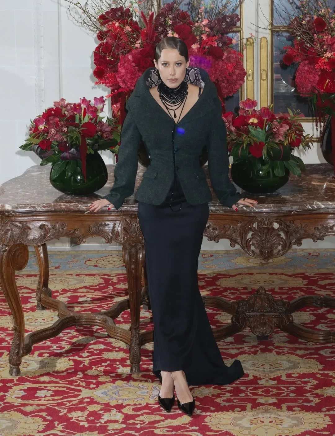 Ксения Собчак посетила ужин модного дома Dior, где встретилась с креативным директором Джонатаном Андерсоном. 44-летняя журналистка надела на мероприятие жакет Duran Lantink и юбку от Яны Расковаловой, дополнив образ винтажным колье Джона Гальяно из коллекции 1997 года и сумкой в форме ежа от Джонатана Андерсона.